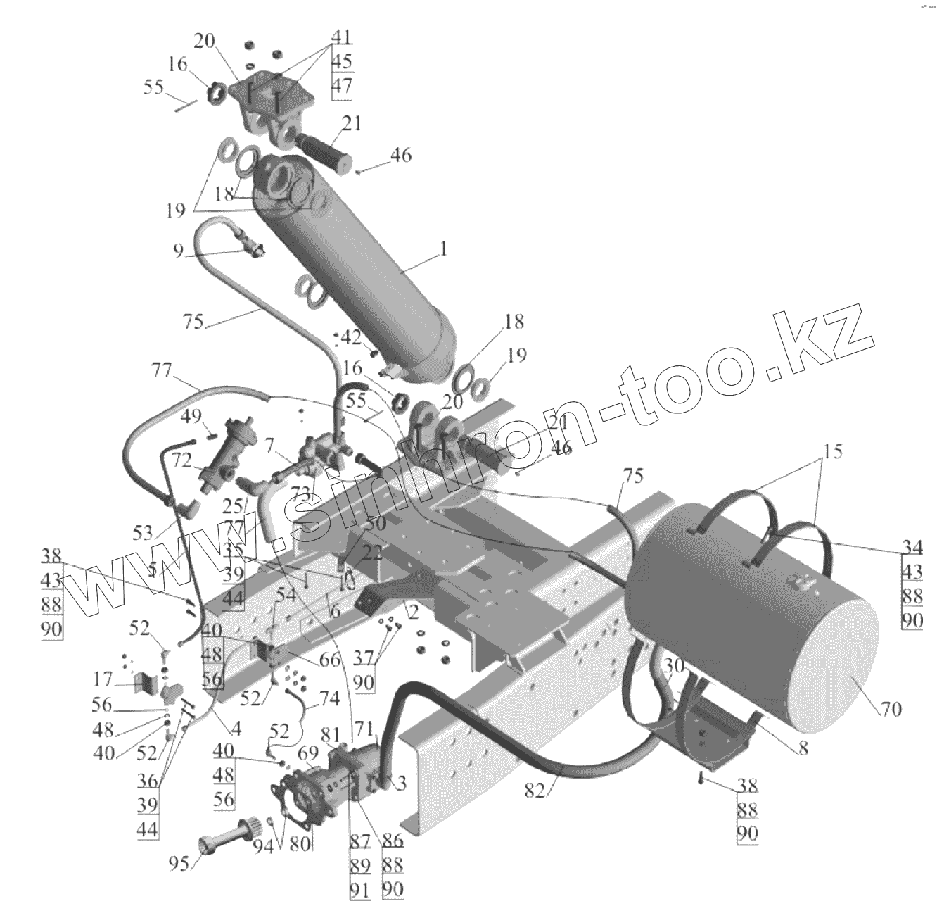 Каталог запасных частей к технике: МАЗ-651705. Установка гидрооборудования