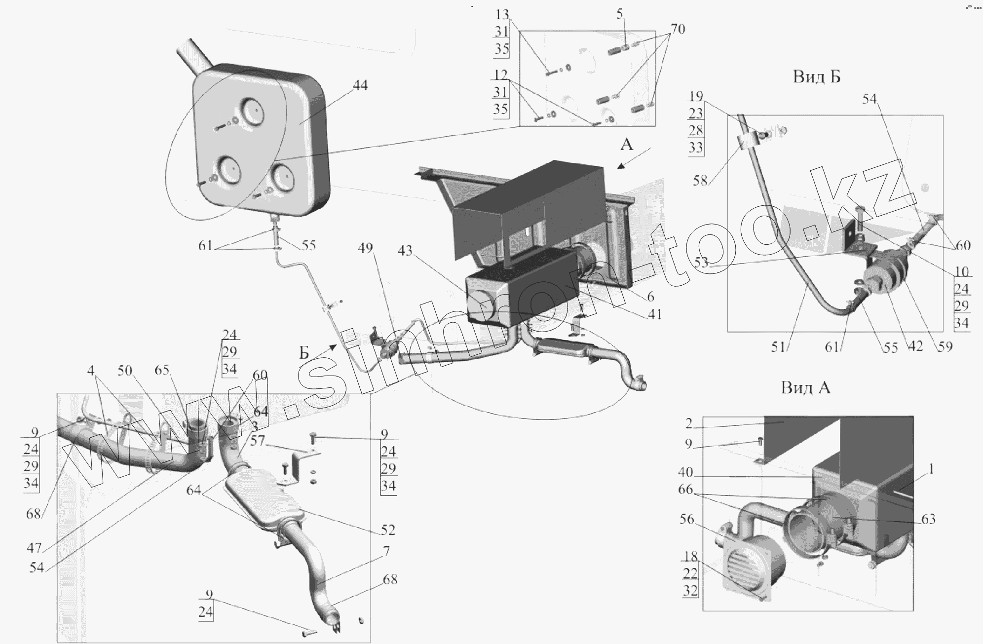 Каталог запасных частей к технике: МАЗ-651705. Установка независимого воздушного отопителя 642550-8100002
