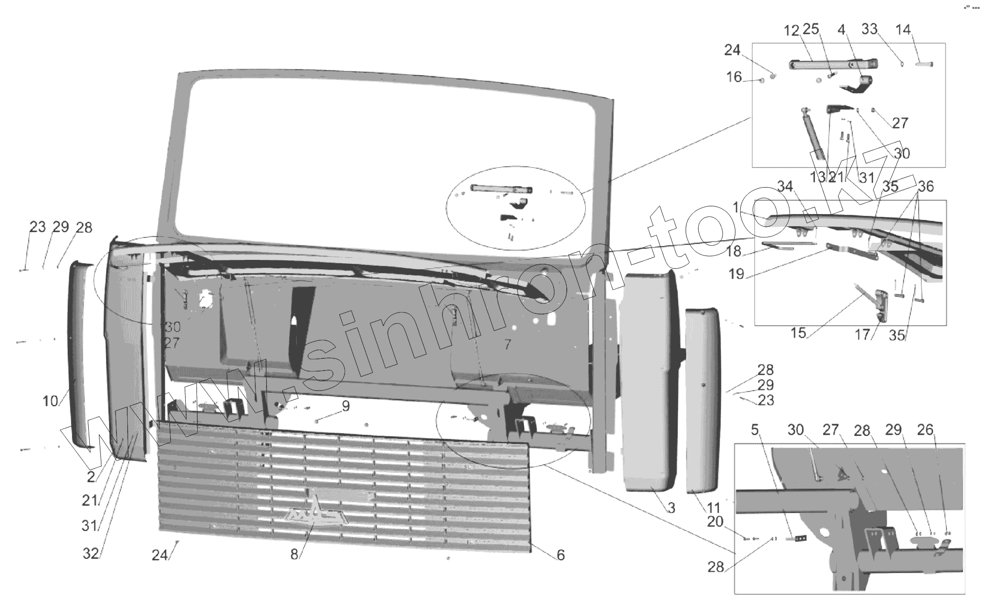Каталог запасных частей к технике: МАЗ-651705. Установка облицовки передка 64221-8400018