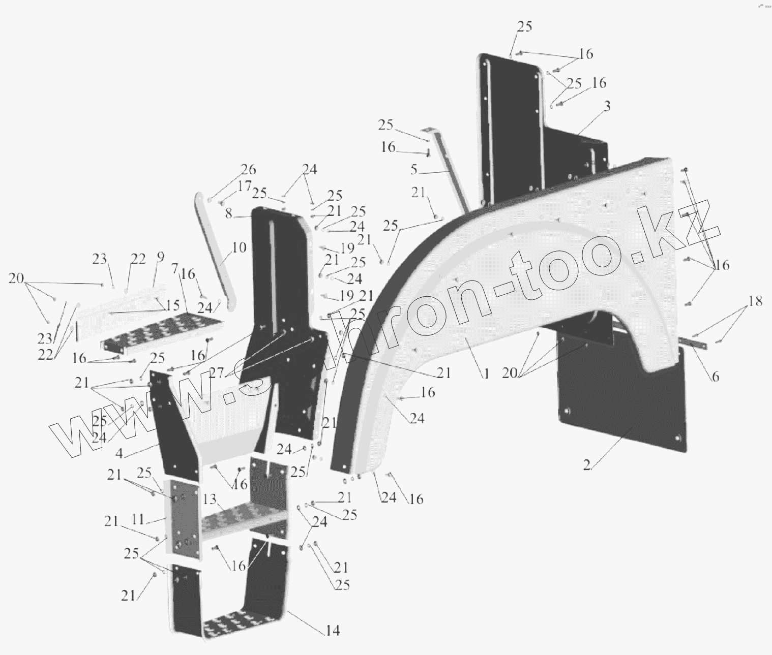 Каталог запасных частей к технике: МАЗ-651705. Установка оперения 63171-8400020