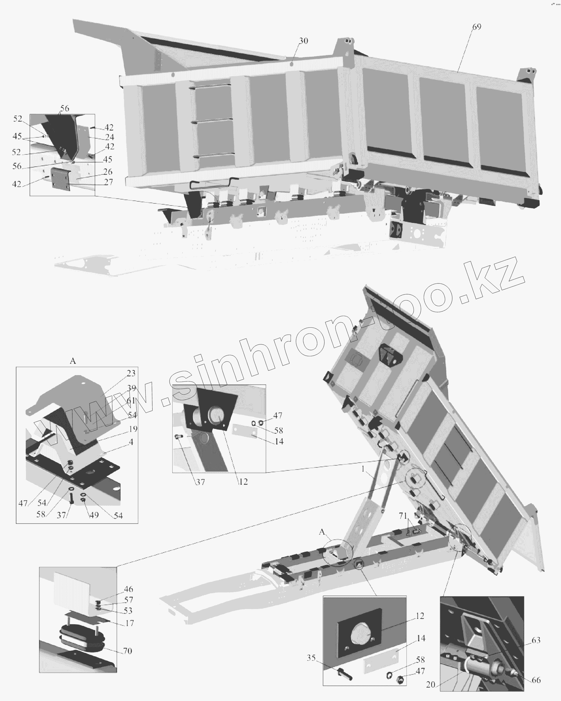 Каталог запасных частей к технике: МАЗ-651705. Установка платформы V=10,3м3