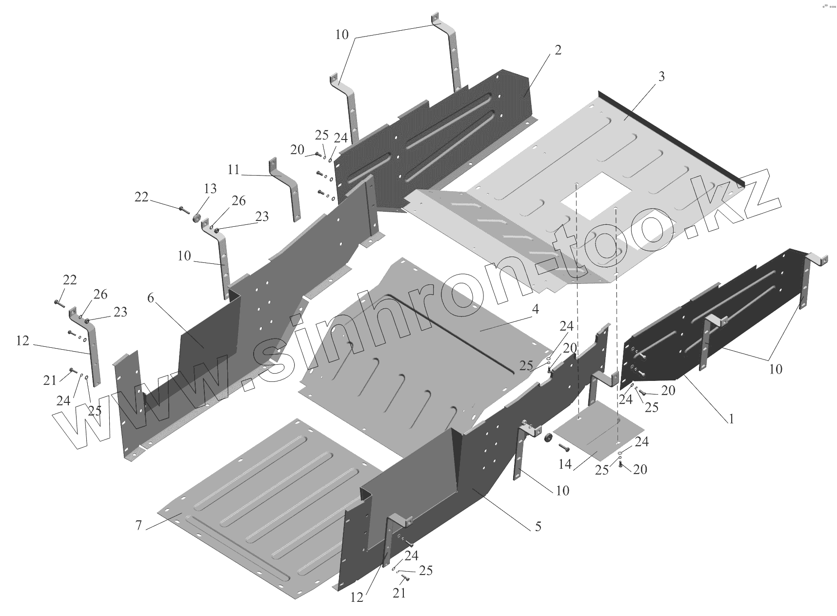 Каталог запасных частей к технике: МАЗ-651705. Установка шумоизоляционных экранов 642208-1061004