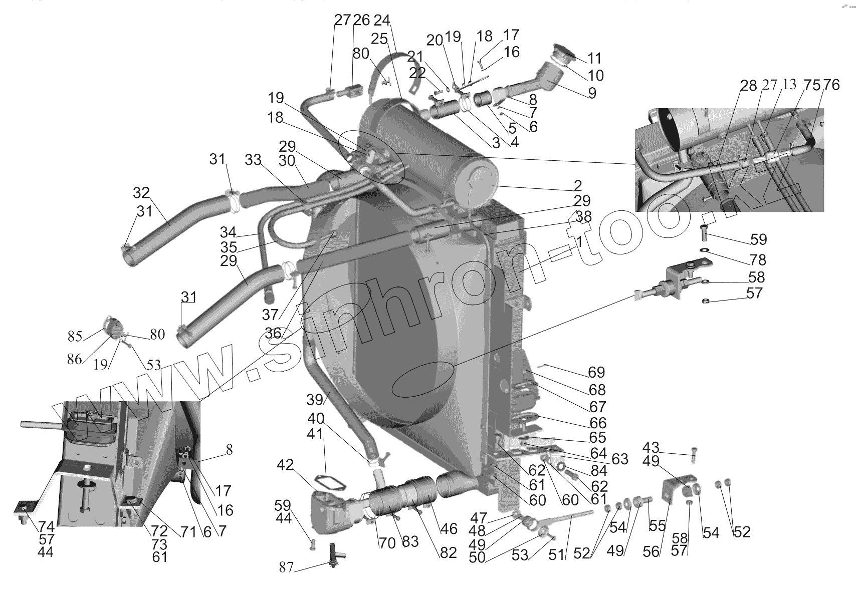Каталог запасных частей к технике: МАЗ-651705. Установка системы охлаждения 551605-1300005-010