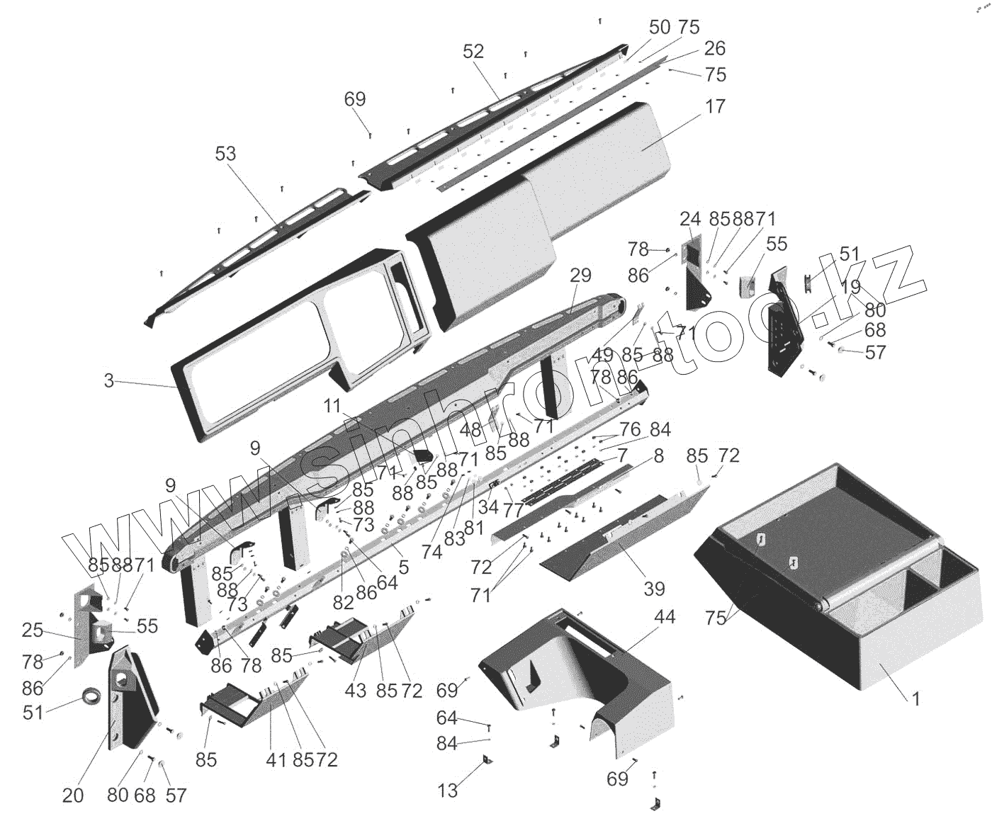 Каталог запасных частей к технике: МАЗ-6517X9-0000410. Панель приборов 64221-5300014
