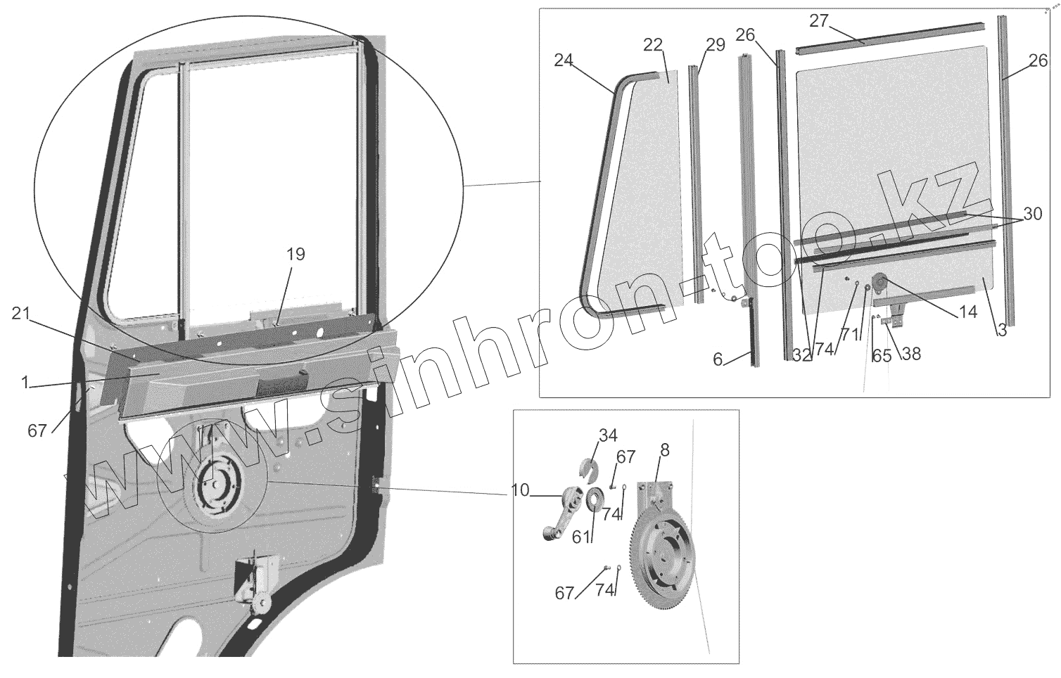 Каталог запасных частей к технике: МАЗ-6517X9-0000410. Установка дверной арматуры