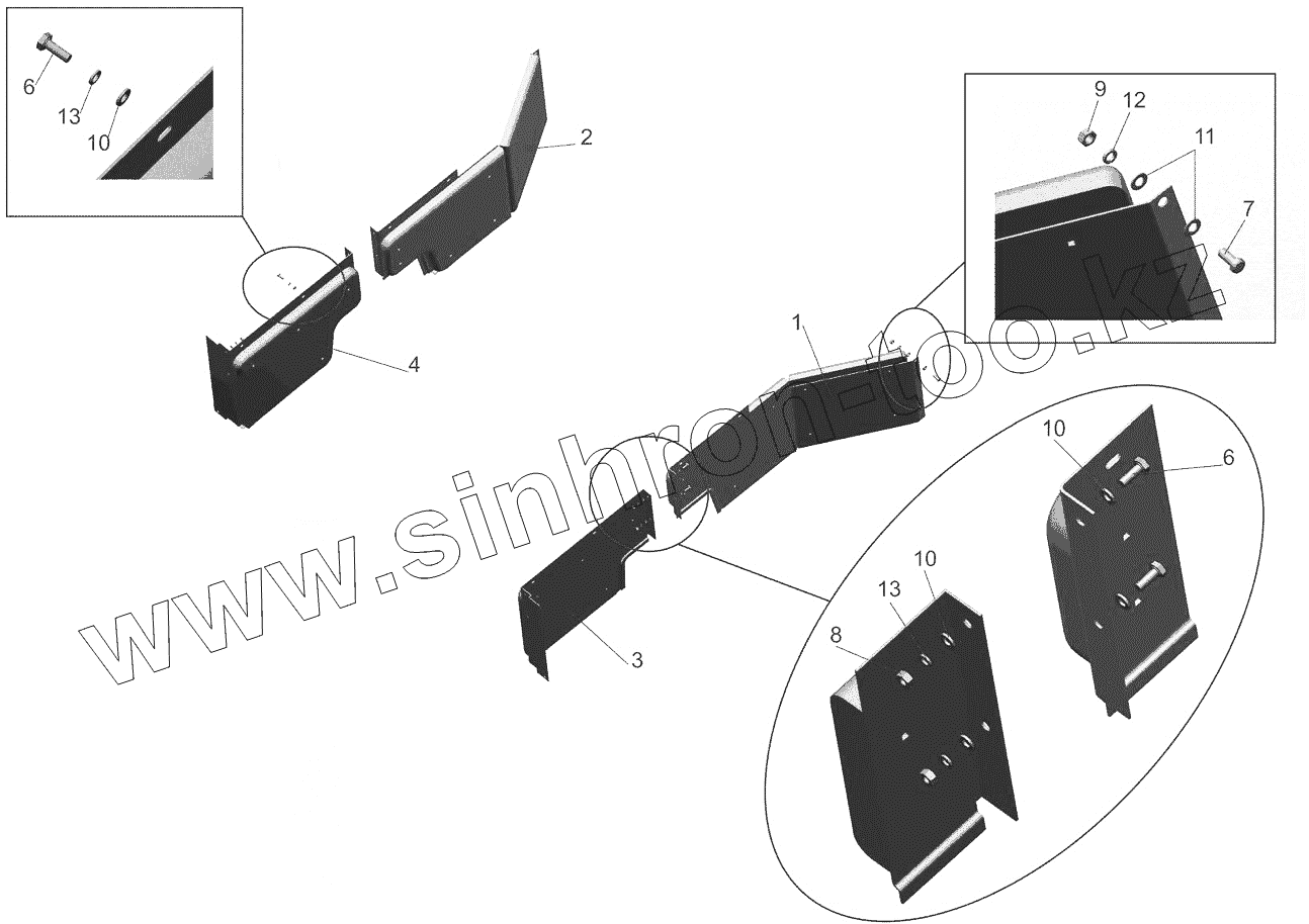 Каталог запасных частей к технике: МАЗ-6517X9-0000410. Установка экранов 651705-8400030-070