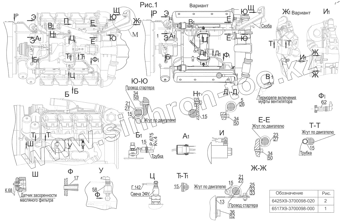 Каталог запасных частей к технике: МАЗ-6517X9-0000410. Установка электрооборудования на двигателе