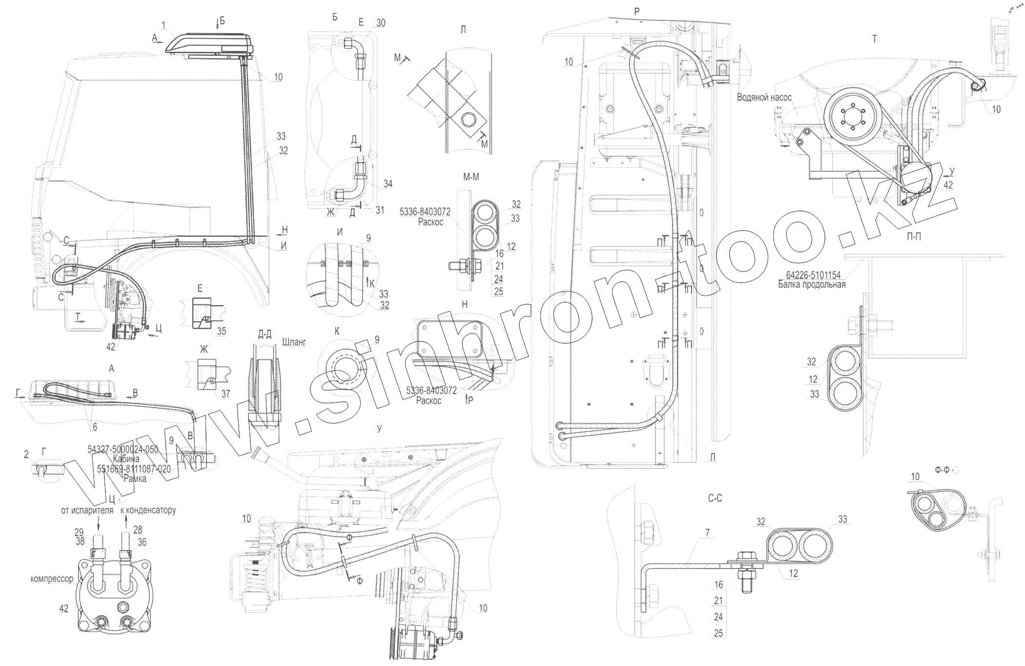 Каталог запасных частей к технике: МАЗ-6517X9-0000410. Установка кондиционера 642208-8100004-000