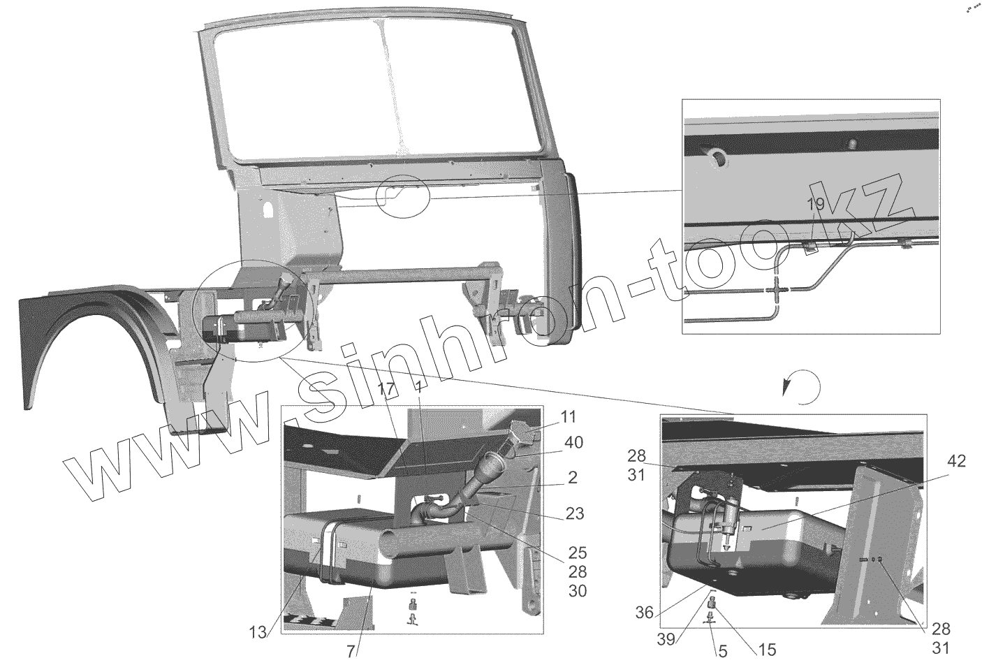 Каталог запасных частей к технике: МАЗ-6517X9-0000410. Установка омывателя 64221-5200008-01