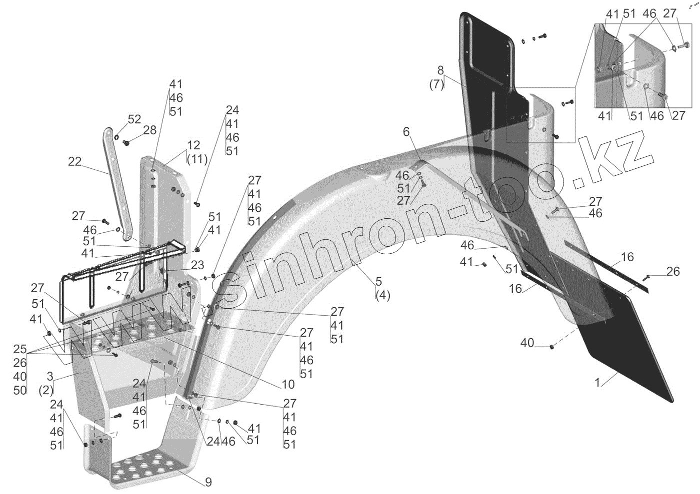 Каталог запасных частей к технике: МАЗ-6517X9-0000410. Установка оперения 642508-8400020