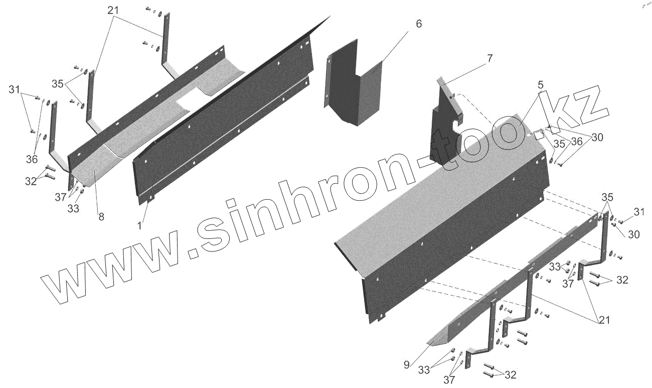 Каталог запасных частей к технике: МАЗ-6517X9-0000410. Установка шумоизоляционных экранов 642208-1061003