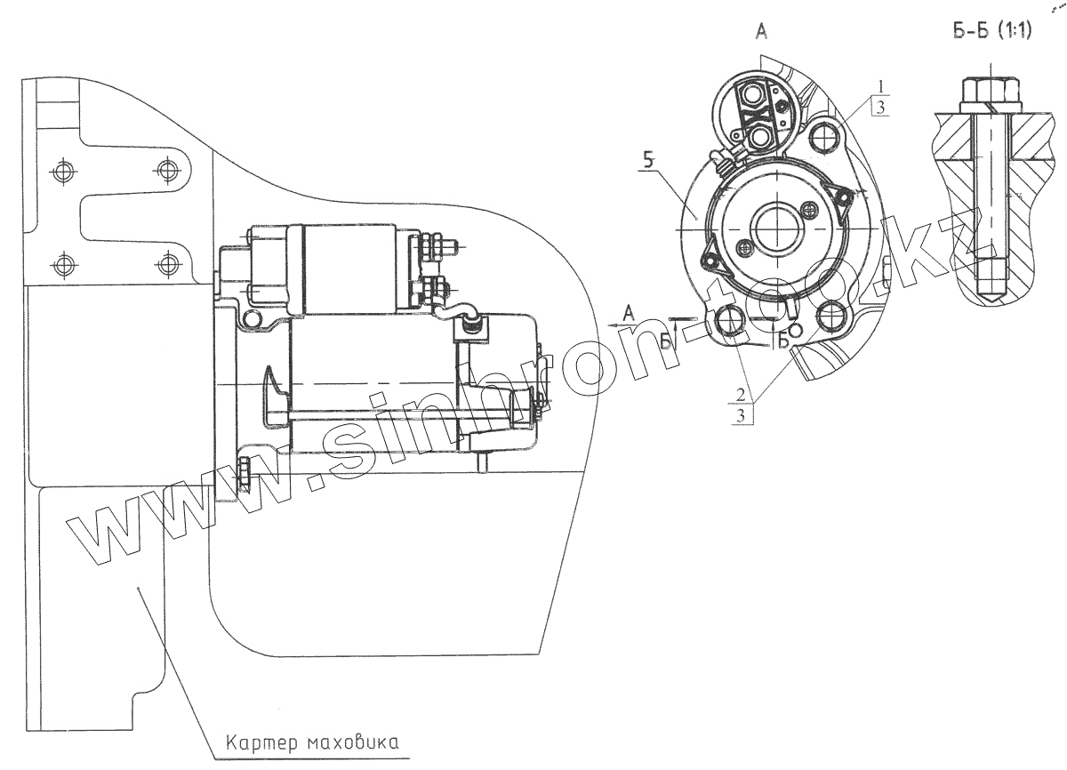 Каталог запасных частей к технике: МАЗ-6517X9-0000410. Установка стартера