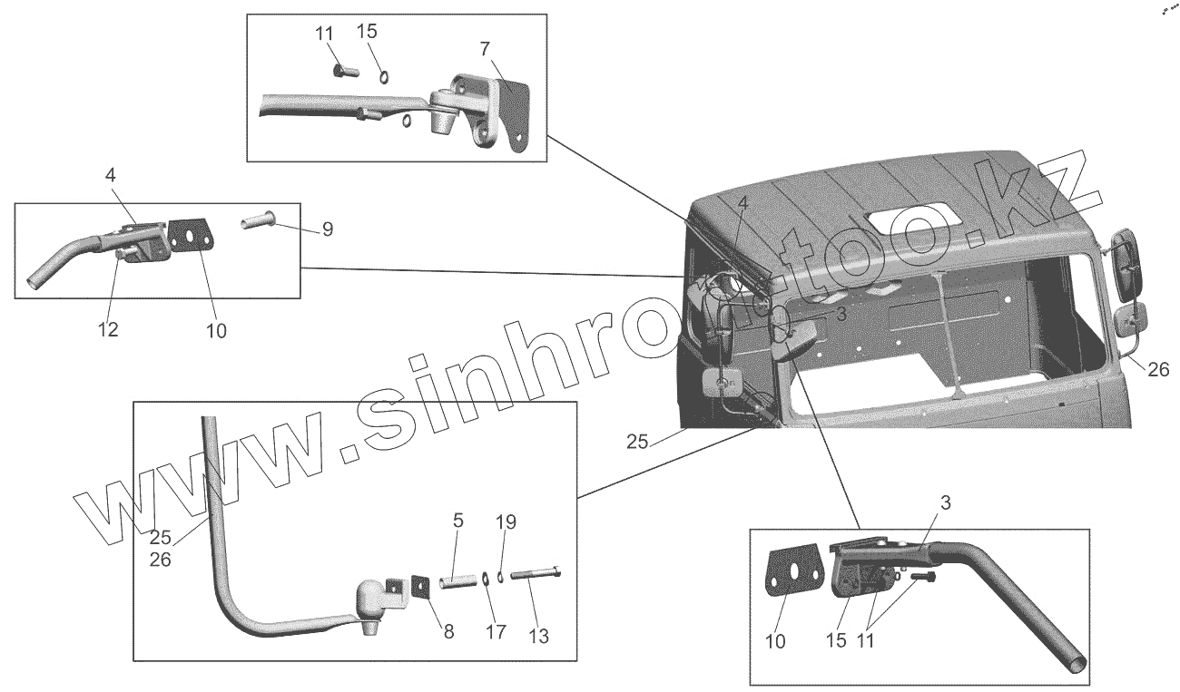 Каталог запасных частей к технике: МАЗ-6517X9-0000410. Установка зеркалодержателей