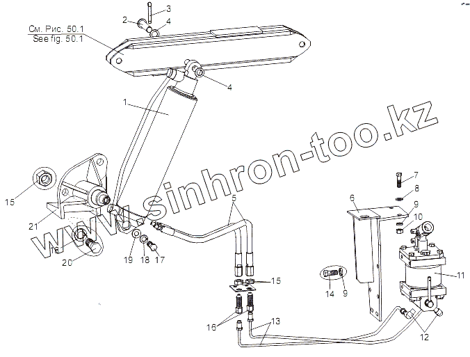Каталог запасных частей к технике: МАЗ-74131. Механизм подъёма кабины