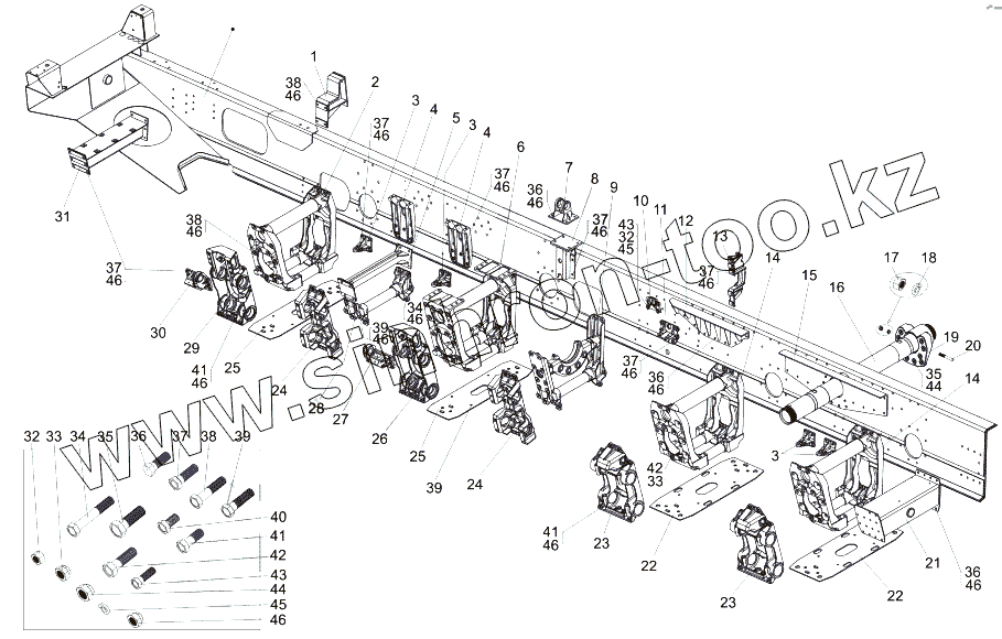| 16 | 74131-2918052 | Ось балансирной подвески | |