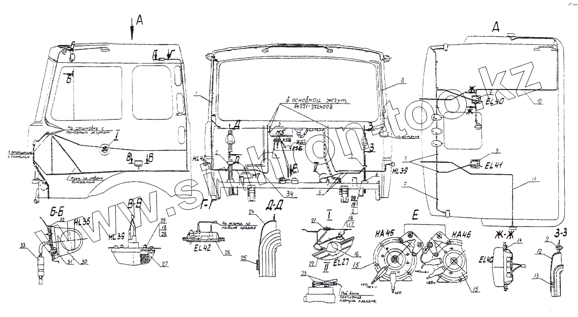 Каталог запасных частей к технике: МАЗ-74131. Установка электрооборудования на кабине