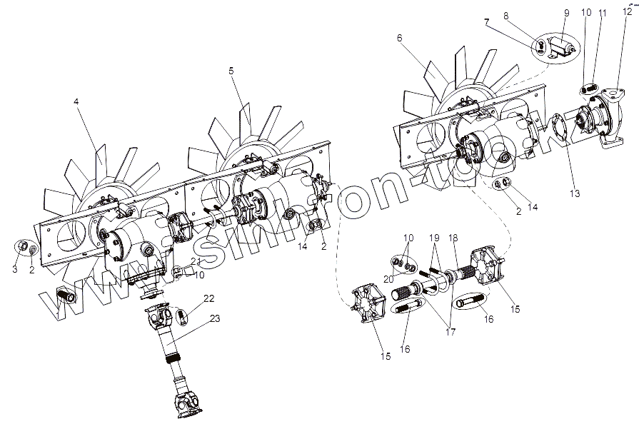 Каталог запасных частей к технике: МАЗ-74131. Установка редукторов привода вентиляторов