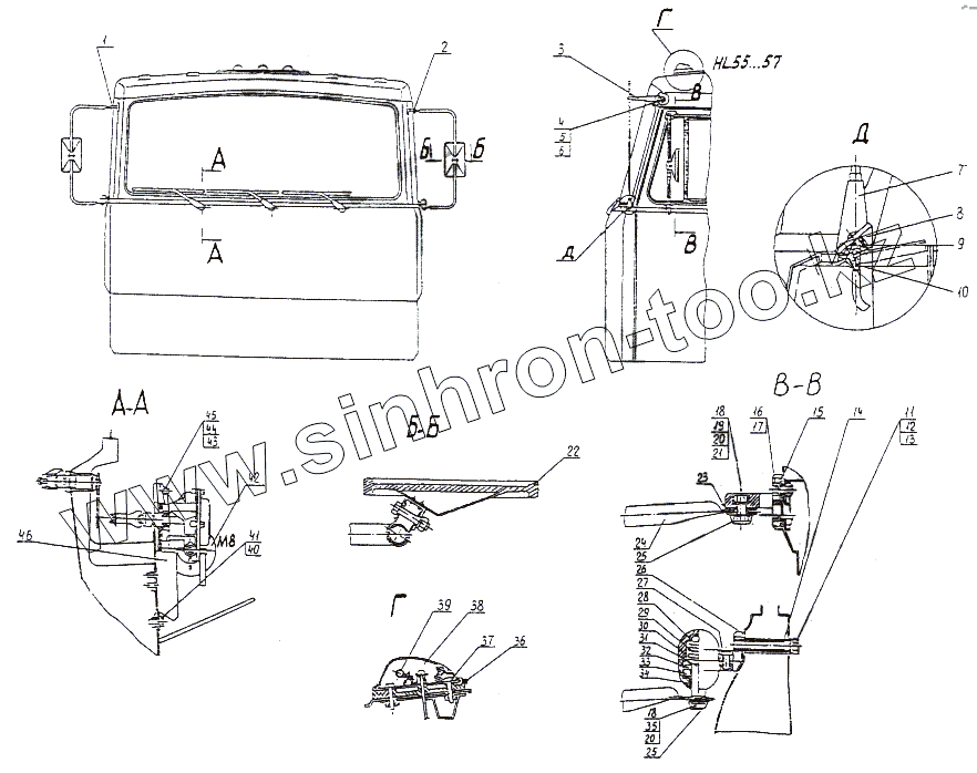 Каталог запасных частей к технике: МАЗ-74131. Установка стеклоочистителя. Зеркала