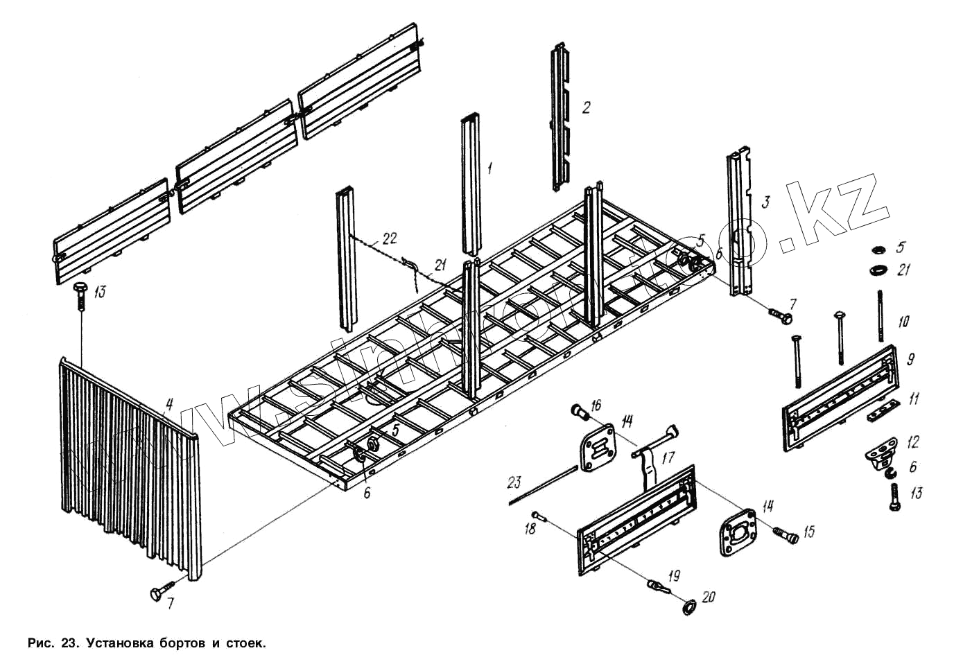 Каталог запасных частей к технике: МАЗ-83781. Установка бортов и стоек