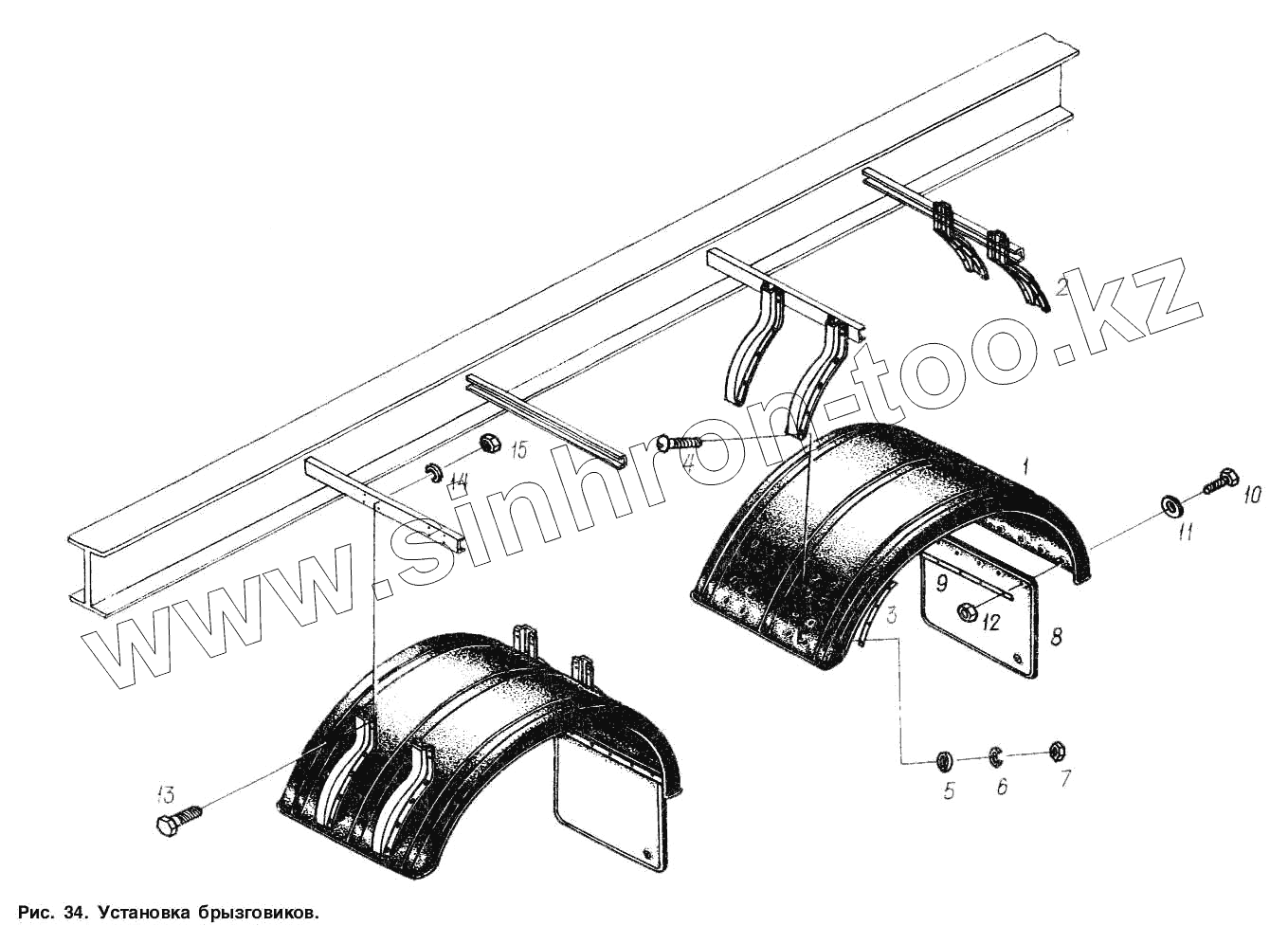 Каталог запасных частей к технике: МАЗ-93802. Установка брызговиков