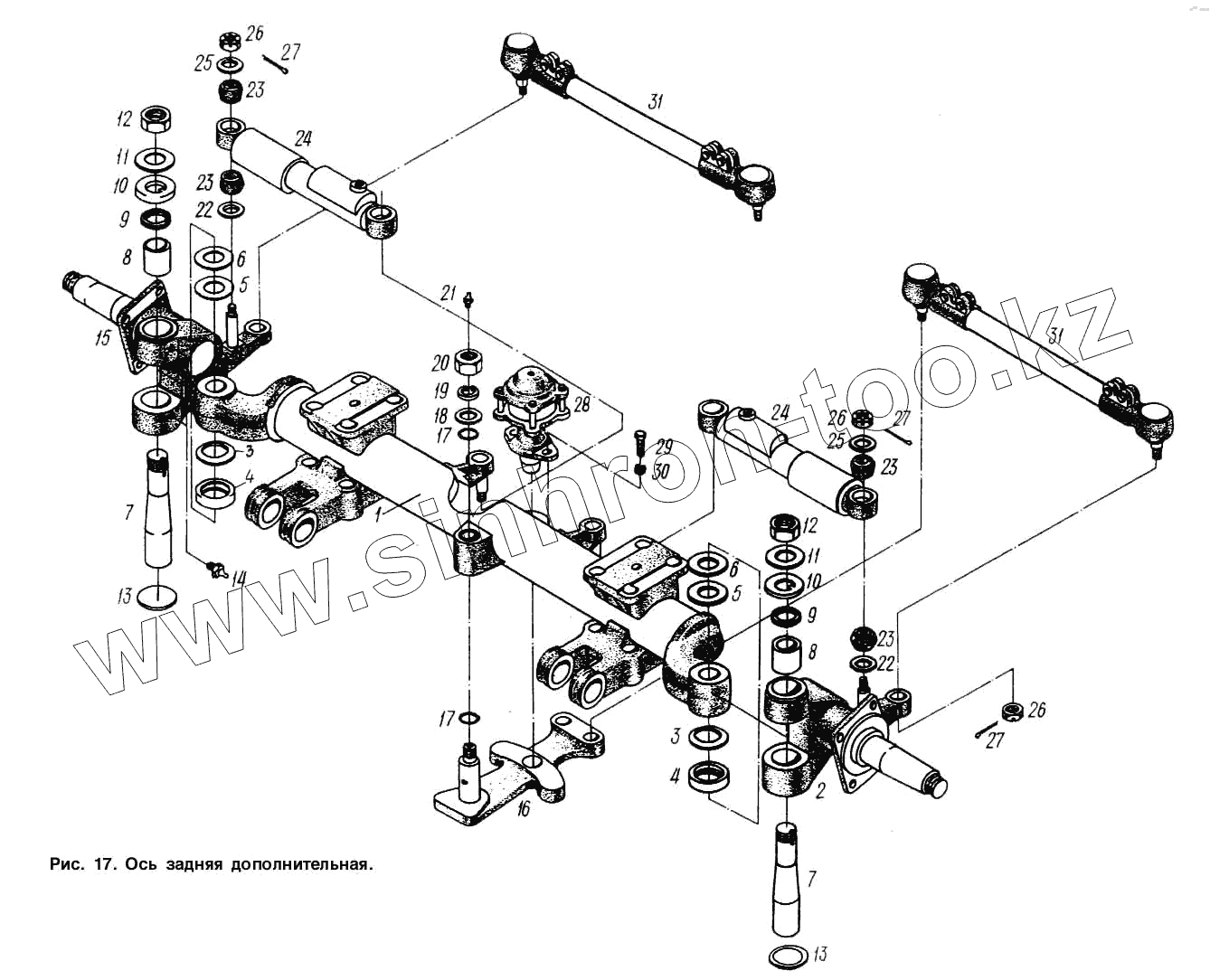 Каталог запасных частей к технике: МАЗ-93892. Ось задняя дополнительная