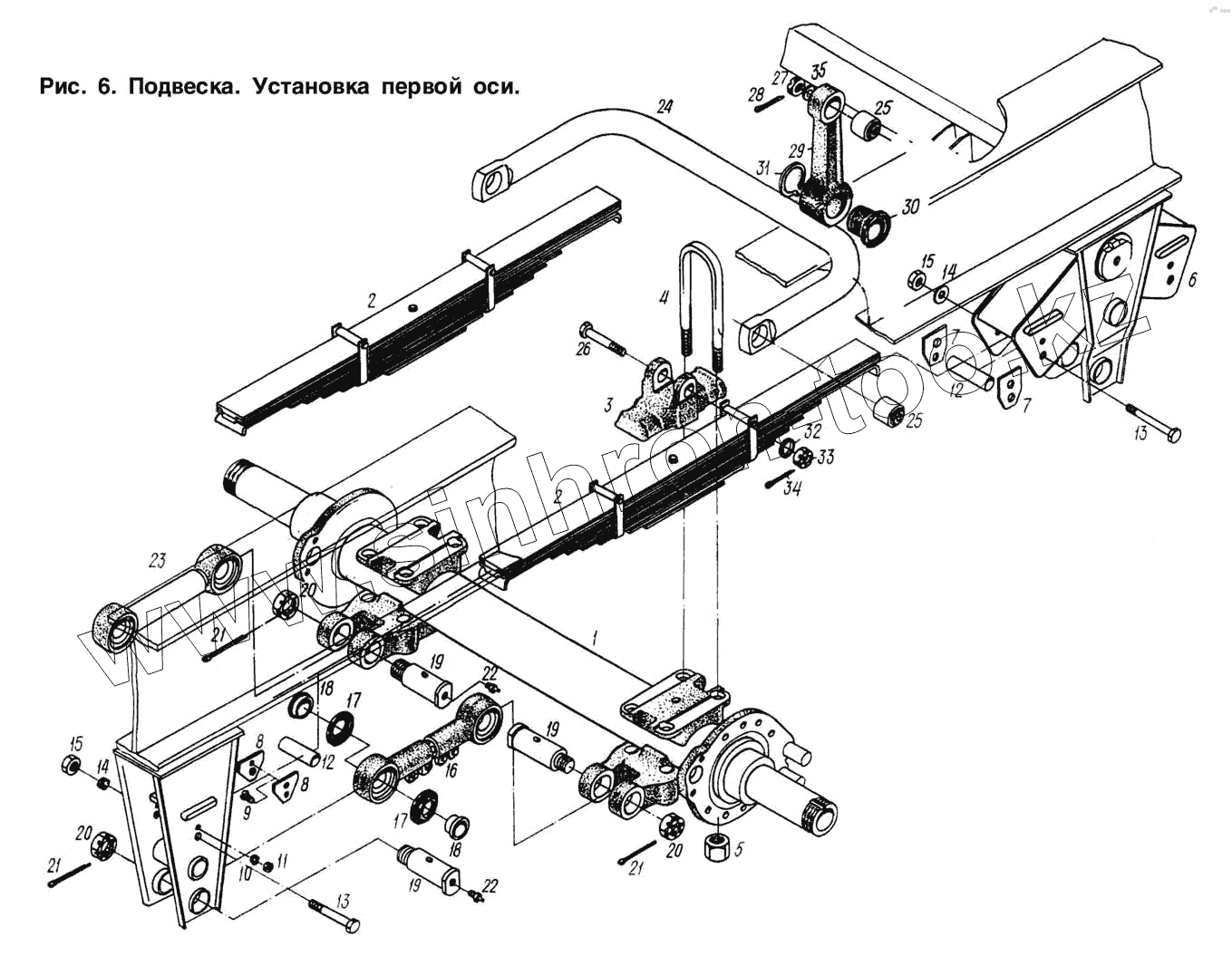 Каталог запасных частей к технике: МАЗ-93892. Подвеска. Установка первой оси