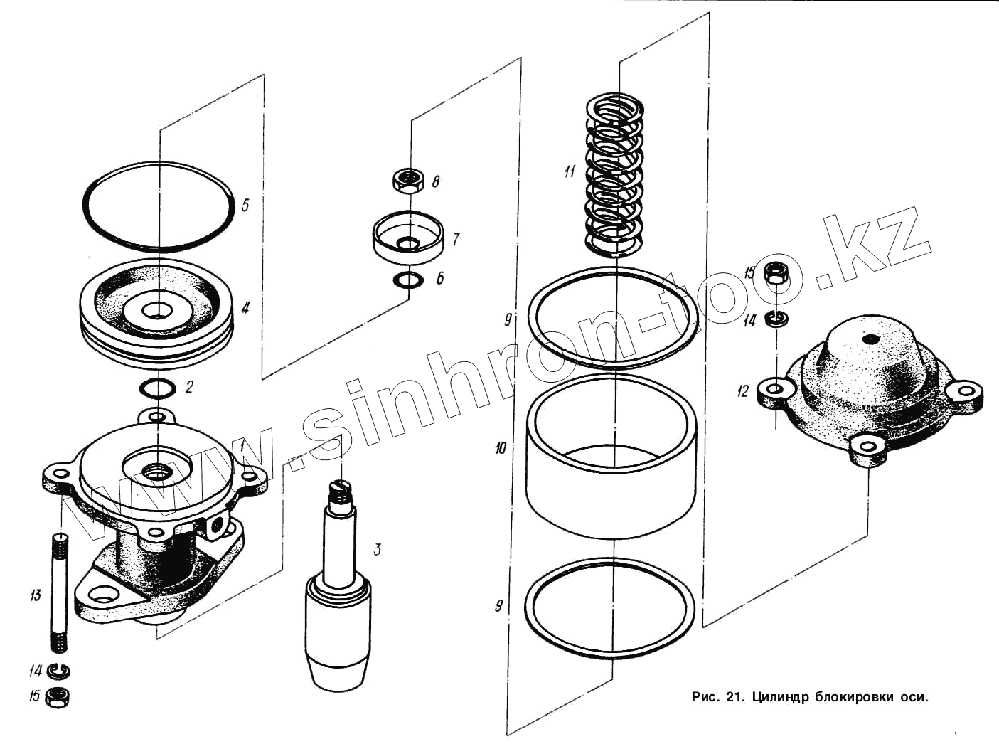 Каталог запасных частей к технике: МАЗ-93892. Цилиндр блокировки оси