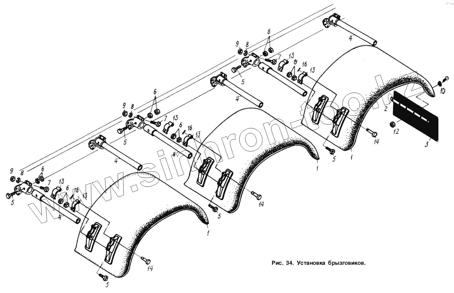 Каталог запасных частей к технике: МАЗ-93892. Установка брызговиков