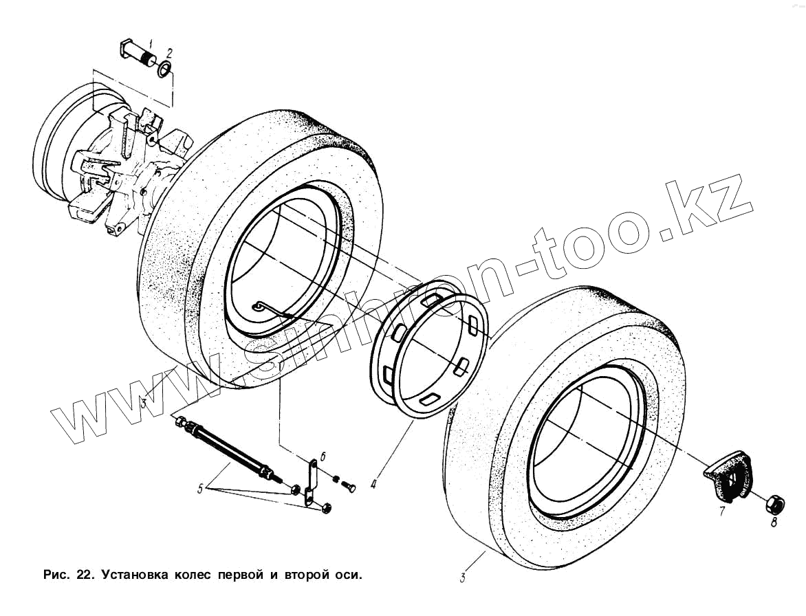 Каталог запасных частей к технике: МАЗ-93892. Установка колес первой и второй оси