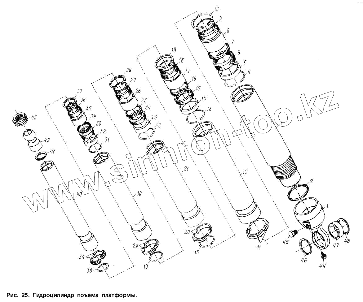 Каталог запасных частей к технике: МАЗ-9506. Гидроцилиндр подъема платформы