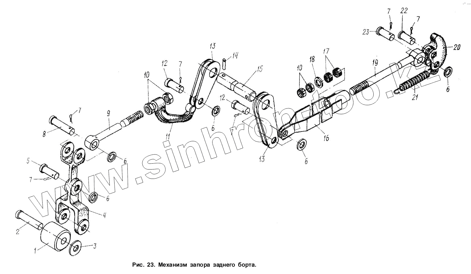 Каталог запасных частей к технике: МАЗ-9506. Механизм запора заднего борта