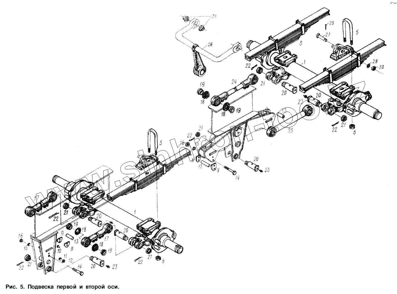 Каталог запасных частей к технике: МАЗ-9506. Подвеска. Установка первой и второй оси