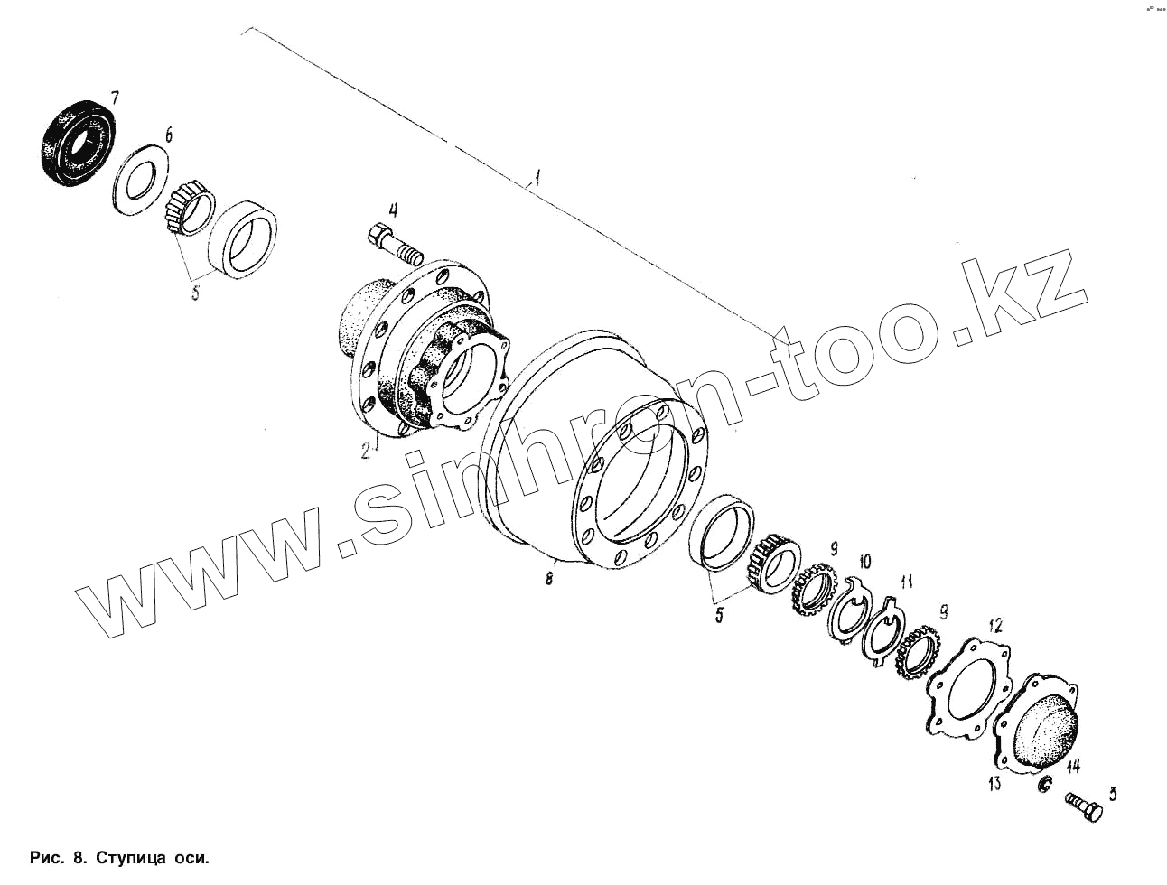 Каталог запасных частей к технике: МАЗ-9506. Ступица оси
