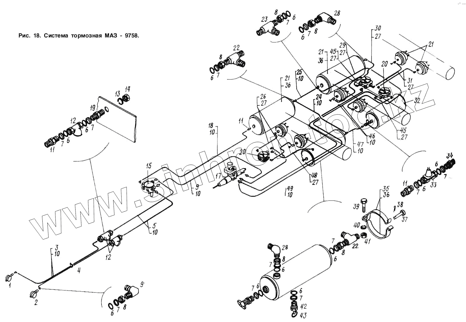 Каталог запасных частей к технике: МАЗ-9758-30. Система тормозная МАЗ 9758