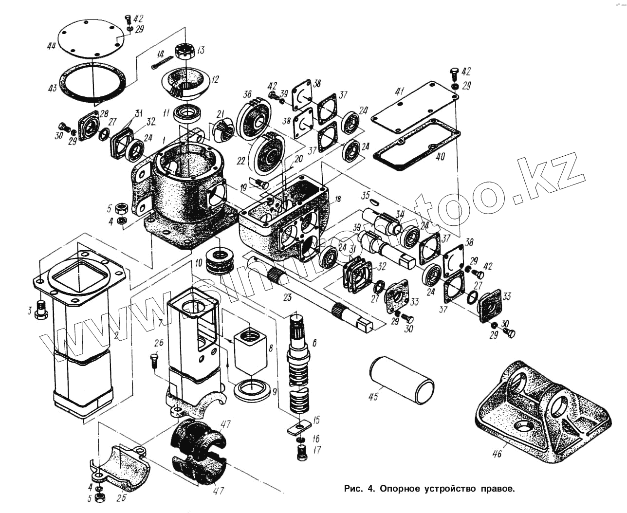 Каталог запасных частей к технике: МАЗ-9758. Опорное устройство правое