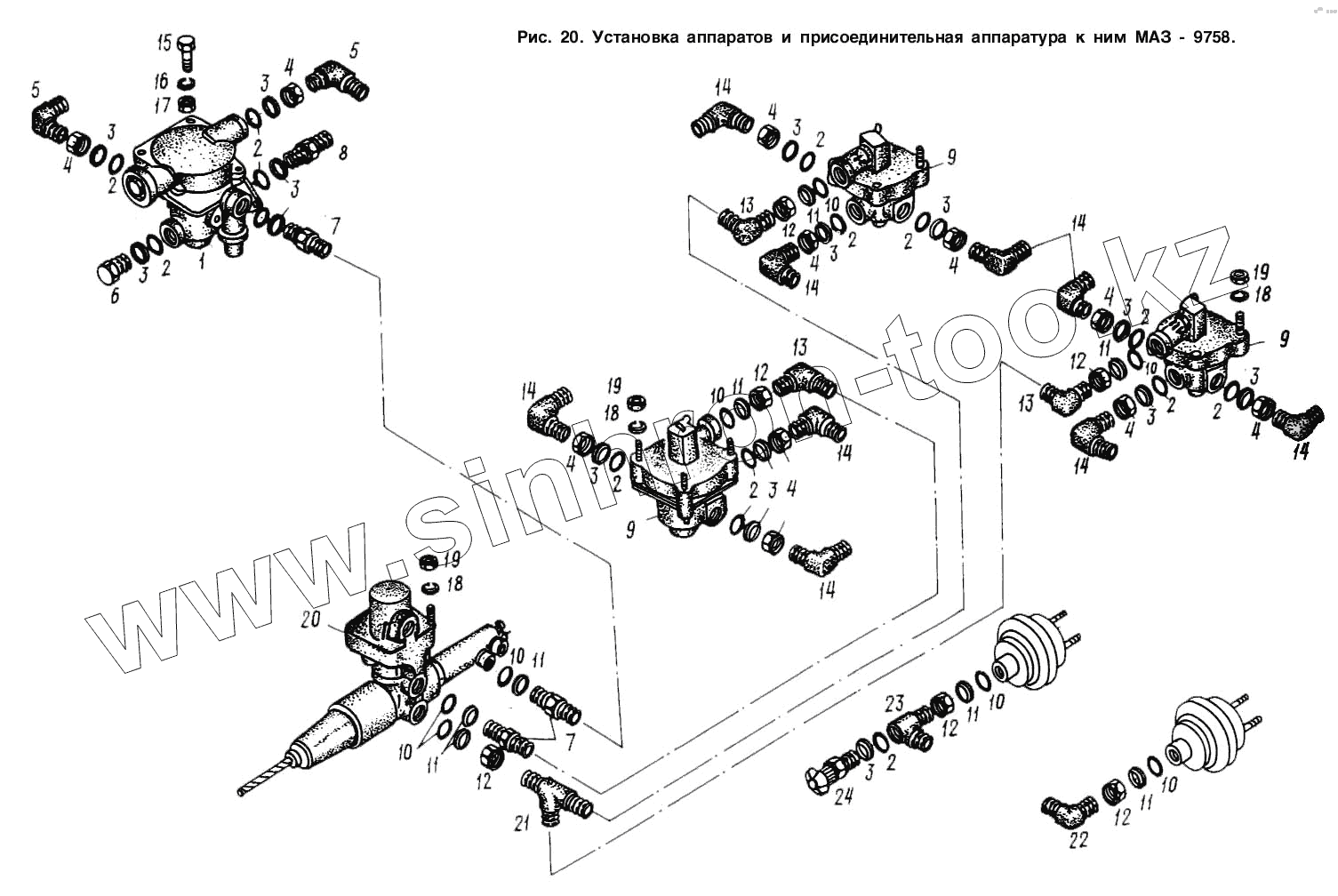 Каталог запасных частей к технике: МАЗ-9758. Установка аппаратов и присоединительная арматура к ним