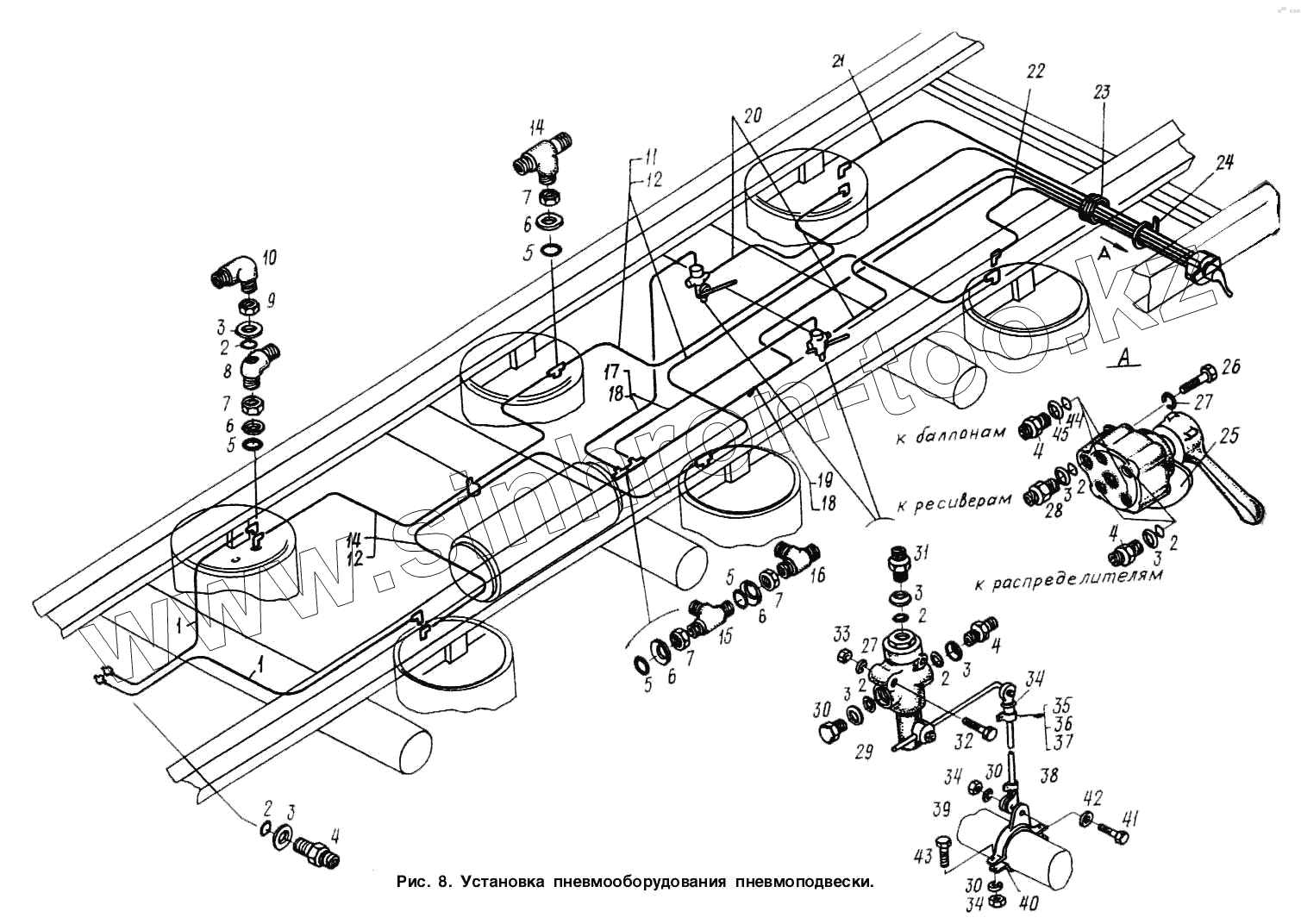 Каталог запасных частей к технике: МАЗ-9758. Установка пневмооборудования подвески