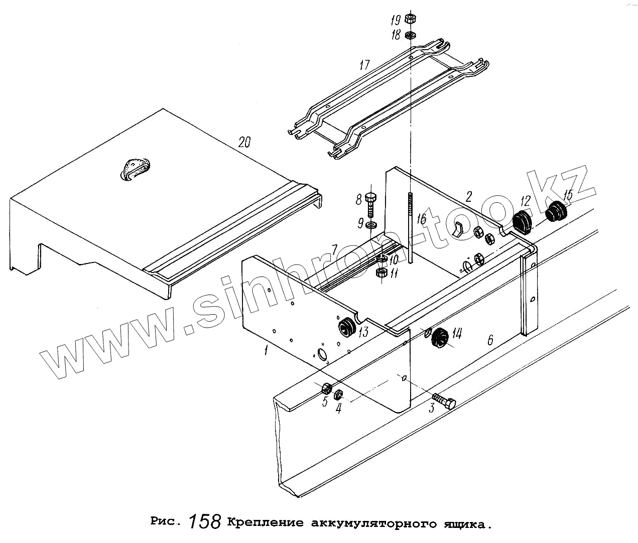 Каталог запасных частей к технике: МАЗ Общий (см. мод-ции). Крепление аккумуляторного ящика
