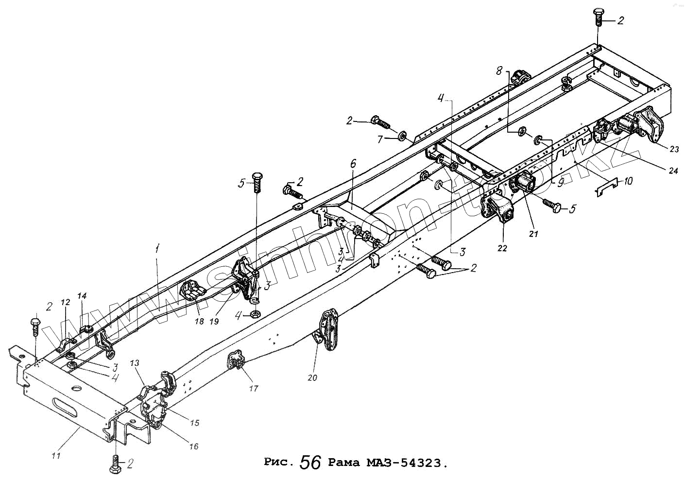Каталог запасных частей к технике: МАЗ Общий (см. мод-ции). Рама МАЗ-54323