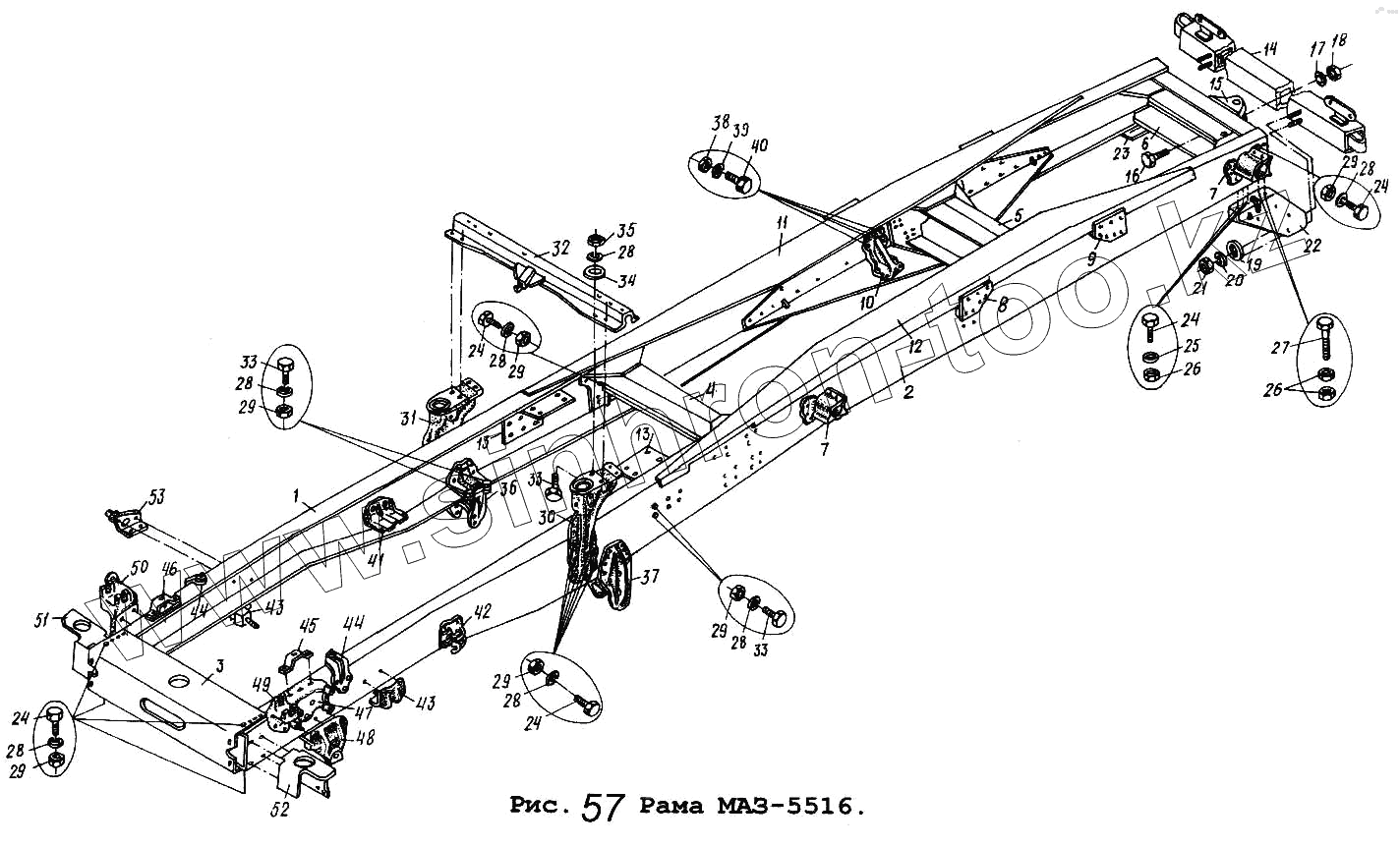 Каталог запасных частей к технике: МАЗ Общий (см. мод-ции). Рама МАЗ-5516