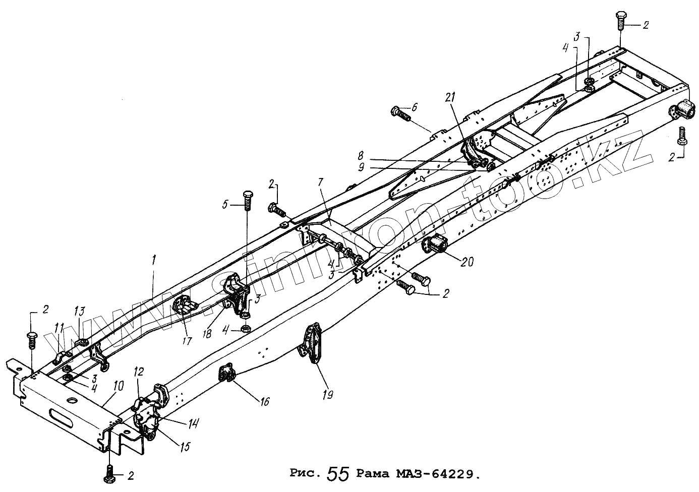 Каталог запасных частей к технике: МАЗ Общий (см. мод-ции). Рама МАЗ-64229