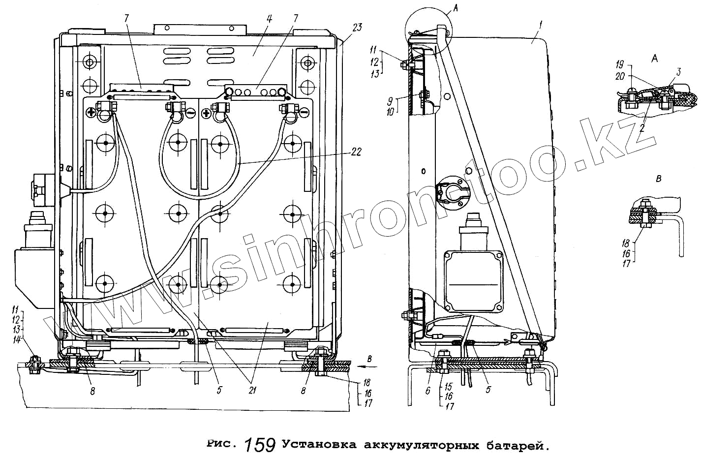 Каталог запасных частей к технике: МАЗ Общий (см. мод-ции). Установка аккумуляторных батарей