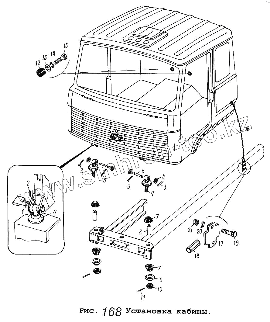 Каталог запасных частей к технике: МАЗ Общий (см. мод-ции). Установка кабины