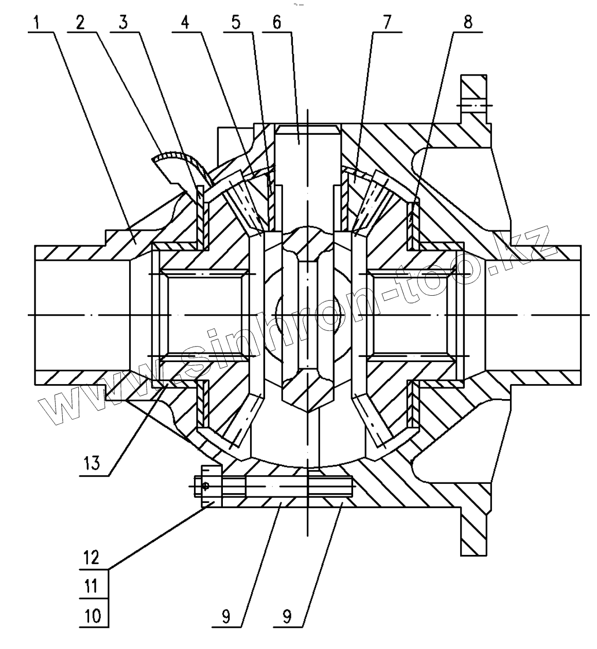 Каталог запасных частей к технике: МоАЗ 75051. Дифференциал редуктора переднего моста