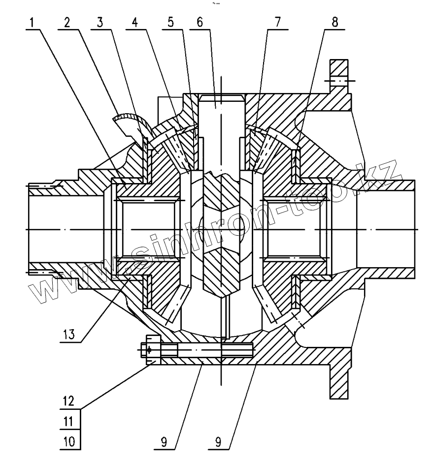 Каталог запасных частей к технике: МоАЗ 75051. Дифференциал редуктора заднего моста