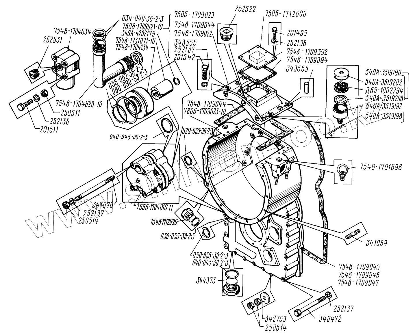 Каталог запасных частей к технике: МоАЗ 75051. Картер гидротрансформатора
