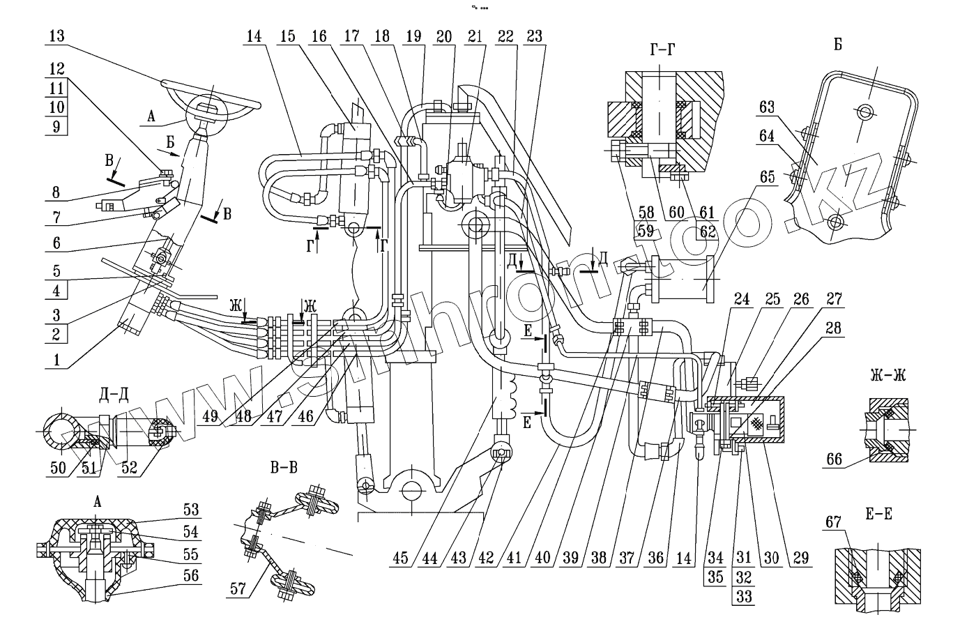 Каталог запасных частей к технике: МоАЗ 75051. Схема установки рулевого управления