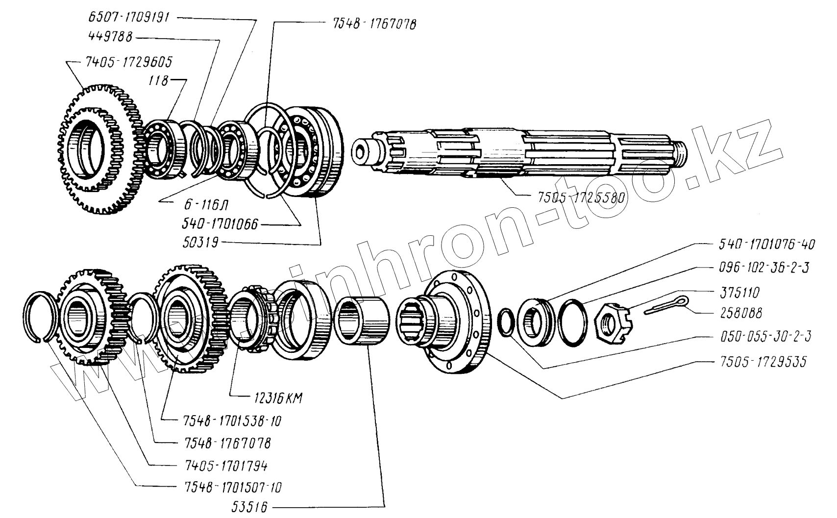 Каталог запасных частей к технике: МоАЗ 75051. Вал ведомый