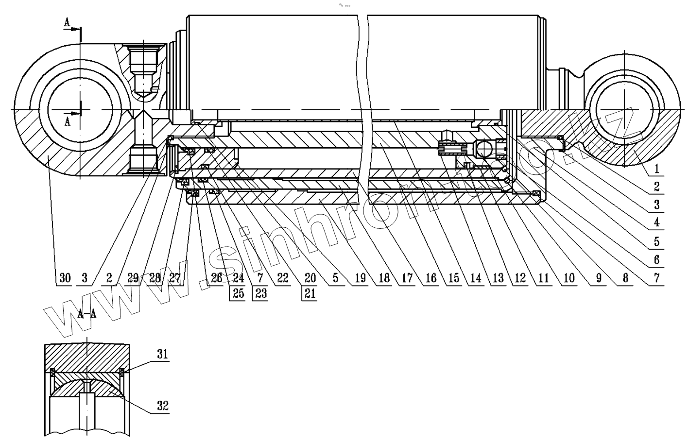 Каталог запасных частей к технике: МоАЗ 75054-22. Гидроцилиндр опрокидывающего механизма