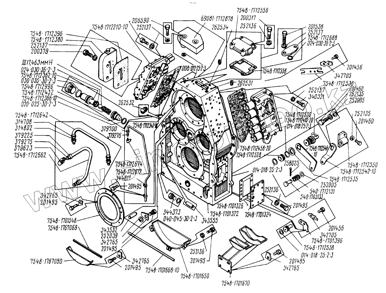Каталог запасных частей к технике: МоАЗ 75054-22. Картер гидромеханической передачи